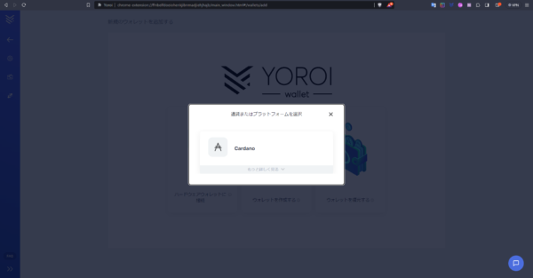 通貨またはプラットフォームを選択から「Cardano」をクリックします。