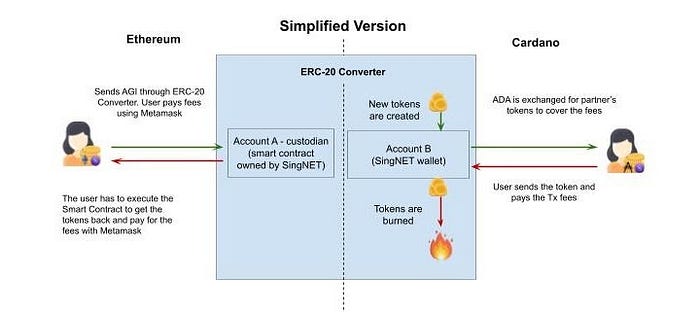 シンギュラリティネットブリッジにより、誰でもEthereumウォレットにあるAGIX-ETHトークンをCardanoウォレットにあるAGIX-ADAトークンに、またはその逆も可能です。
